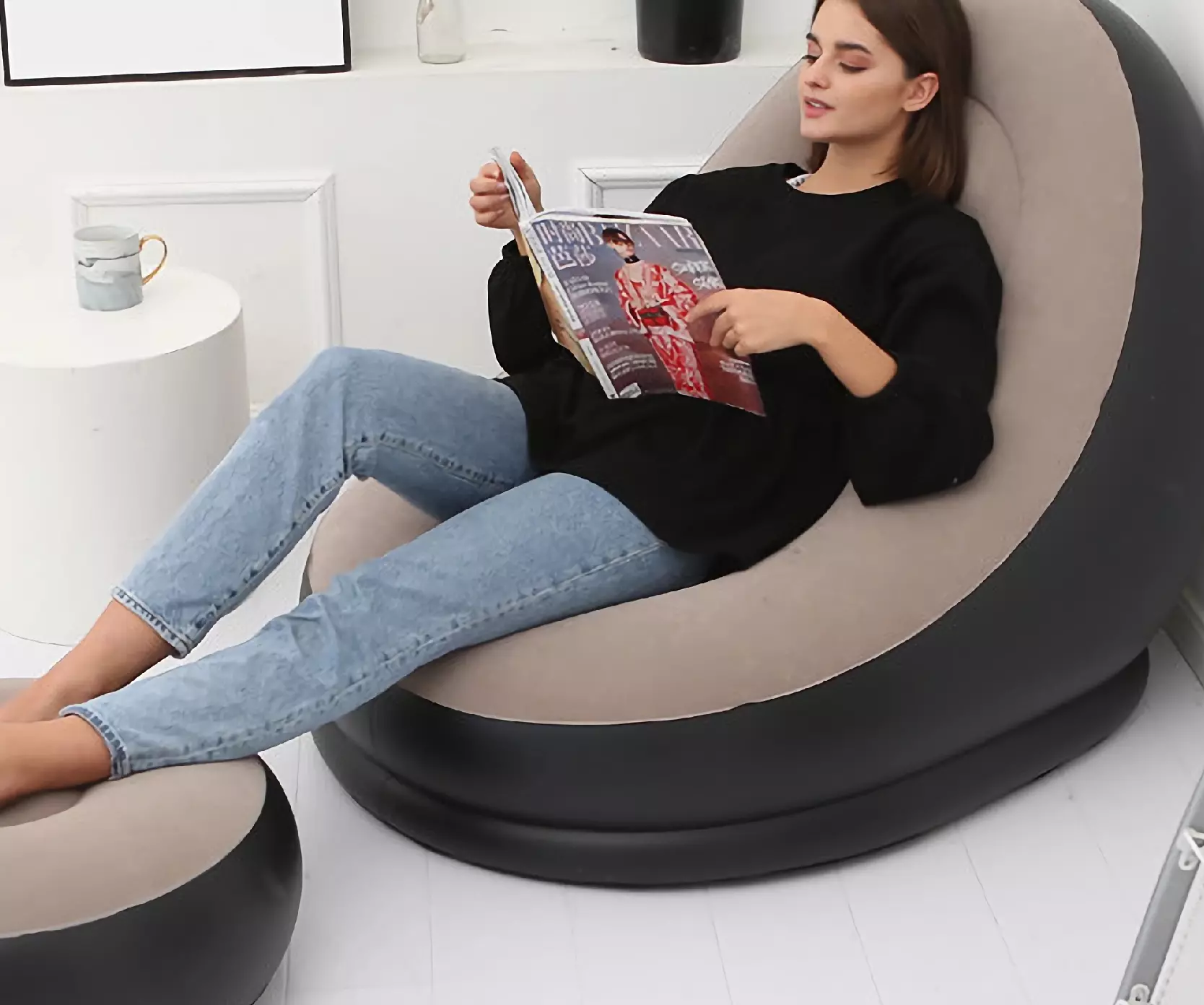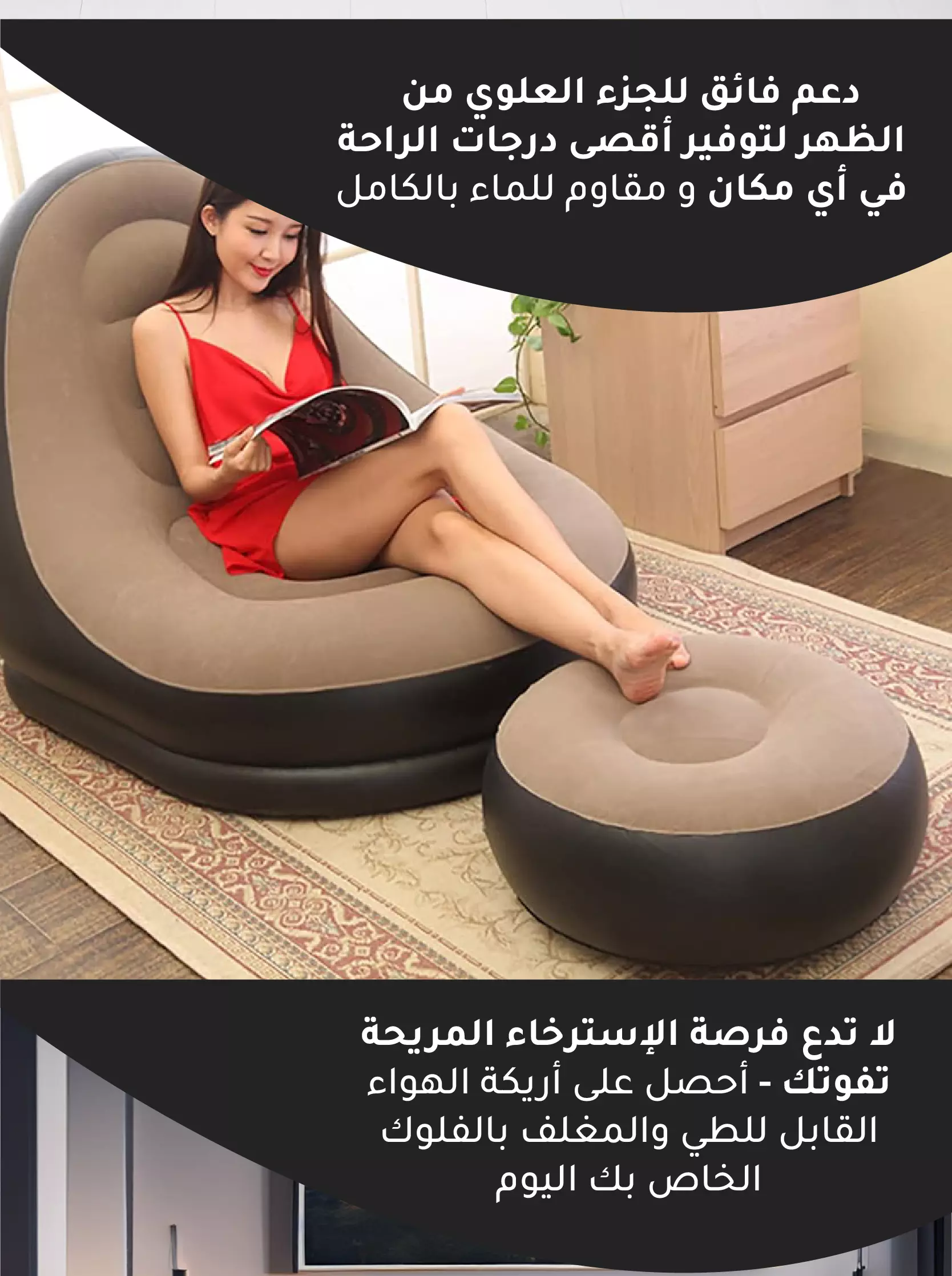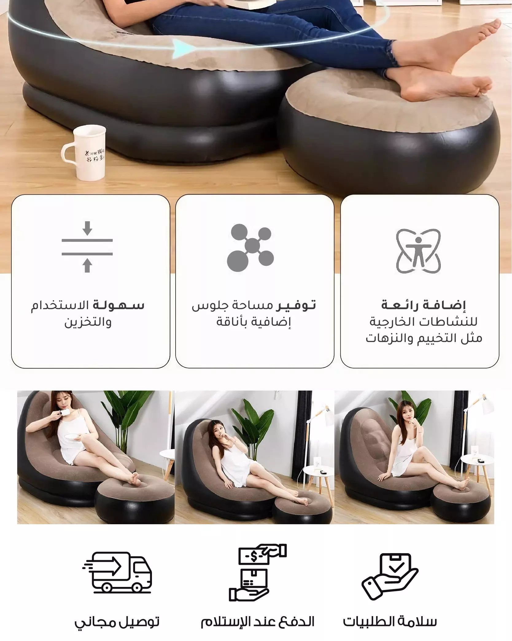 أريكة إسترخاء قابلة للنفخ مع مقعد للقدم